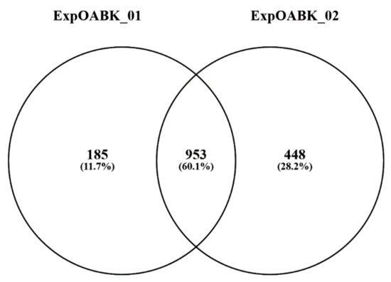 Qualitative and quantitative results of the differential proteins in OAB vs. control group in both experiments (ExpOABK_01 and ExpOABK_02).
