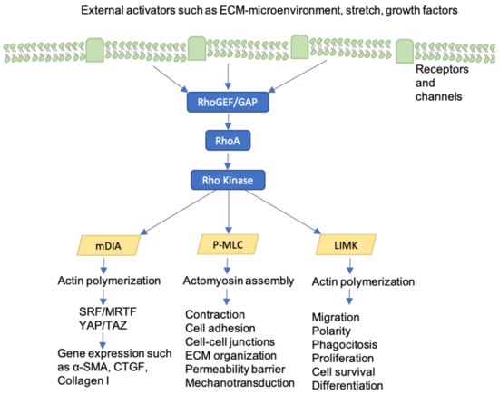 - Lessey, E.C.; Guilluy, C.; Burridge, K. From mechanical force to RhoA activation. Biochemistry 2012, 51, 7420–7432. [Google Scholar] [CrossRef]