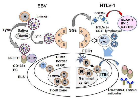 APA StyleNakamura, H., Shimizu, T., & Kawakami, A. (2020). Role of Viral Infections in the Pathogenesis of Sjögren’s Syndrome: Different Characteristics of Epstein-Barr Virus and HTLV-1. Journal of Clinical Medicine, 9(5), 1459. https://doi.org/10.3390/jcm9051459
