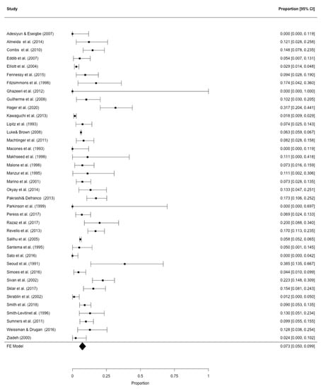 - Hager, M.; Wenzl, R.; Riesenhuber, S.; Marschalek, J.; Kuessel, L.; Mayrhofer, D.; Ristl, R.; Kurz, C.; Ott, J. The Prevalence of Incidental Endometriosis in Women Undergoing Laparoscopic Ovarian Drilling for Clomiphene-Resistant Polycystic Ovary Syndrome: A Retrospective Cohort Study and Meta-Analysis. J. Clin. Med. 2019, 8, 1210. [Google Scholar] [CrossRef]