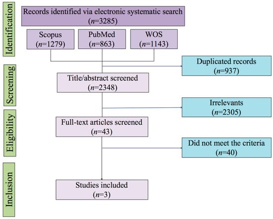 Firstly, a primary systematic literature search in three electronic databases was performed by two independent reviewers (F.E.-L. and K.M.) on 15 June 2019. The combination of search terms in each database was: