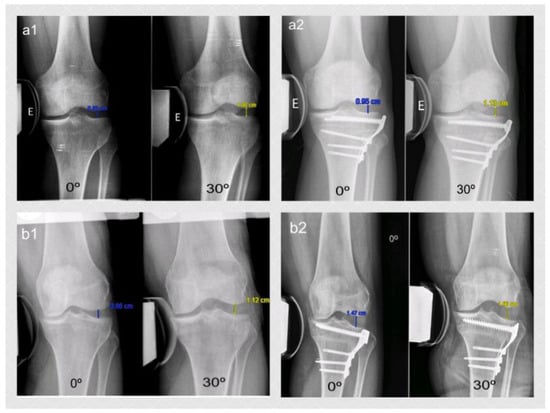 - Van Egmond, N.; van Grinsven, S. Better clinical results after closed- compared to open-wedge high tibial osteotomy in patients with medial knee osteoarthritis and varus leg alignment. Knee Surg. Sports Traumatol. Arthrosc. 2016, 24, 34–41. [Google Scholar] [CrossRef] [PubMed]