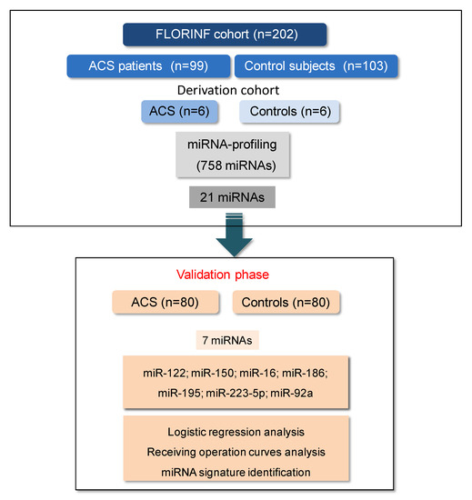 Elbaz, M.; Faccini, J.; Laperche, C.; Grousset, E.; Roncalli, J.; Ruidavets, J.-B.; Vindis, C. Identification of a miRNA Based-Signature Associated with Acute Coronary Syndrome: Evidence from the FLORINF Study. J. Clin. Med. 2020, 9, 1674. https://doi.org/10.3390/jcm9061674