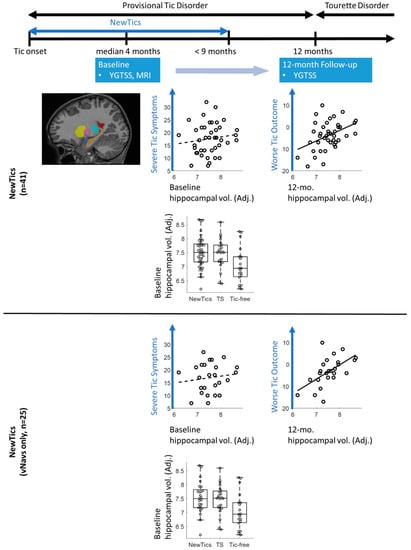 - Kim, S.; Greene, D.J.; D’Andrea, C.B.; Bihun, E.C.; Koller, J.M.; O’Reilly, B.; Schlaggar, B.L.; Black, K.J. Hippocampal Volume in Provisional Tic Disorder Predicts Tic Severity at 12-Month Follow-up. 2020. Available online: https://www.biorxiv.org/content/10.1101/2020.02.05.935908v2 (accessed on 2 May 2020).