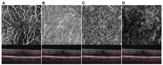 - Lauermann, J.L.; Woetzel, A.K.; Treder, M.; Alnawaiseh, M.; Clemens, C.R.; Eter, N.; Alten, F. Prevalences of segmentation errors and motion artifacts in OCT-angiography differ among retinal diseases. Graefes Arch. Clin. Exp. Ophthalmol. Albrecht Von Graefes Arch. Klin. Exp. Ophthalmol. 2018, 256, 1807–1816. [Google Scholar] [CrossRef]