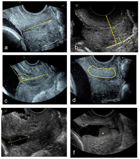 - Dziadosz, M.; Bennett, T.-A.; Dolin, C.; Honart, A.W.; Pham, A.; Lee, S.S.; Pivo, S.; Roman, A. Uterocervical angle: A novel ultrasound screening tool to predict spontaneous preterm birth. Am. J. Obstet. Gynecol. 2016, 215, 376. [Google Scholar] [CrossRef] [PubMed]