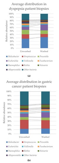 - Ferreira, R.M.; Pereira-Marques, J.; Pinto-Ribeiro, I.; Costa, J.L.; Carneiro, F.; Machado, J.C.; Figueiredo, C. Gastric microbial community profiling reveals a dysbiotic cancer-associted microbiota. Gut 2018, 67, 226–236. [Google Scholar] [CrossRef]