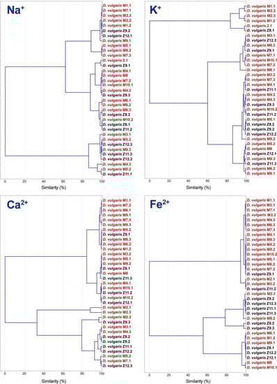 Data obtained regarding intracellular trace element concentration present in the 35 strains isolated were used for cluster analysis. The consistency of the results relies on the fact that measurements were taken with six repetitions per strain.