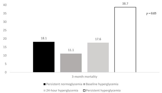 Rates of three-month mortality according to the hyperglycemic patterns.