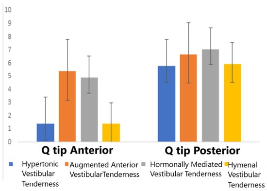 The results of the ANOVA for pain intensity scores, as assessed by the Q-tip tests in each subgroup at the anterior and posterior vestibule, are presented in Figure 4.