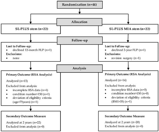 Therefore, the aim of this prospective randomized study was to assess the migration pattern of the SL-PLUS MIA stem using model-based RSA in order to investigate the influence of the design changes on the primary stability of the implant in comparison with the clinically well-documented SL-PLUS stem, which served as a control group.