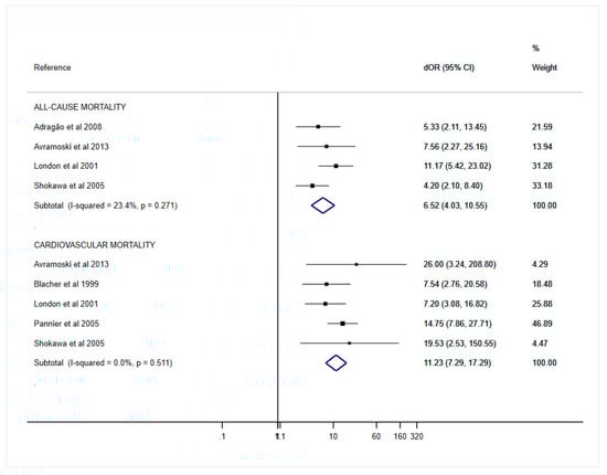 - Avramovski, P.; Janakievska, P.; Sotiroski, K.; Zafirova-Ivanovska, B.; Sikole, A. Aortic pulse wave velocity is a strong predictor of all—Cause and cardiovascular mortality in chronic dialysis patients. Ren. Fail. 2014, 36, 176–186. [Google Scholar] [CrossRef]