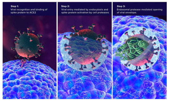 - Zhang, H.; Penninger, J.M.; Li, Y.; Zhong, N.; Slutsky, A.S. Angiotensin-converting enzyme 2 (ACE2) as a SARS-CoV-2 receptor: Molecular mechanisms and potential therapeutic target. Intensiv. Care Med. 2020, 46, 586–590. [Google Scholar] [CrossRef]