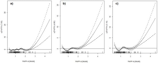 The above discrepancies may be related to the true complexity of relations between the risk of preterm delivery and PAPP-A concentrations. As the value of PAPP-A is a continuous variable, both linear and non-linear associations between perinatal outcomes and PAPP-A are possible. In the presented study, the associations between both low and high PAPP-A concentrations and delivery prior to 34 and 32 weeks of gestation were observed. A further analysis of relations between PAPP-A and preterm deliveries was conducted with the use of generalized additive models and both linear and non-linear relations were observed. A significant U-shaped association between PAPP-A concentration and the risk of delivery prior to 34 and 32 weeks was found. Therefore, researchers in future work should not focus on trying to identify single cut-off values of PAPP-A for determination of preterm delivery risk, as the relation between the two is both linear and non-linear in twin gestations.