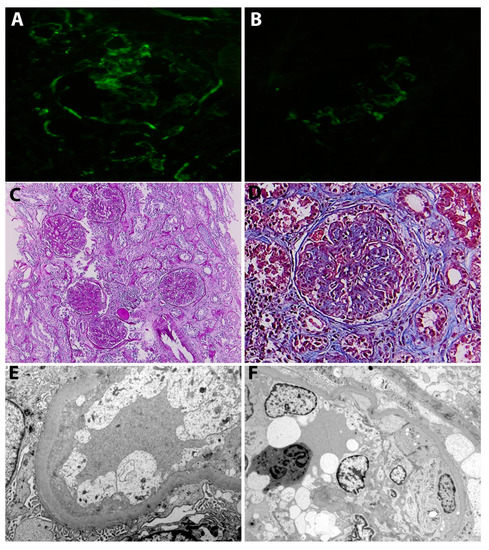 - Jennette, J.C.; Hipp, C.G. Clq Nephropathy: A Distinct Pathologic Entity Usually Causing Nephrotic Syndrome. Am. J. Kidney Dis. 1985, 6, 103–110. [Google Scholar] [CrossRef]