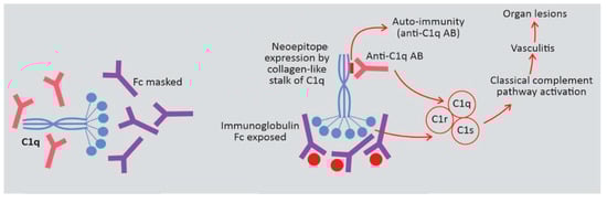 Furthermore, prolonged exposure to the C1q epitope—unmasked by binding to immune complexes—could eventually generate auto anti-C1q antibodies [].