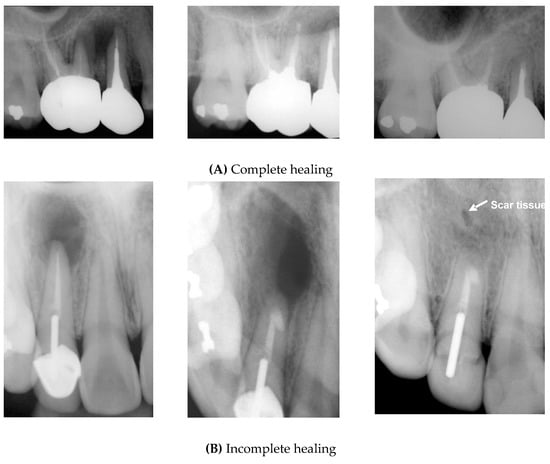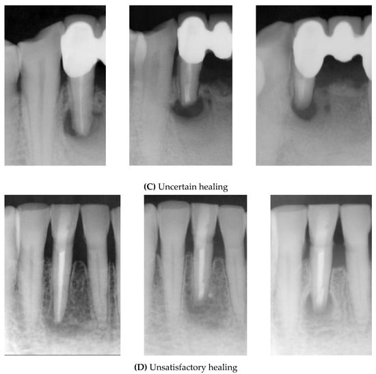 - Molven, O.; Halse, A.; Grung, B. Observer strategy and the radiographic classification of healing after endodontic surgery. Int. J. Oral Maxillofac. Surg. 1987, 16, 432–439. [Google Scholar] [CrossRef]