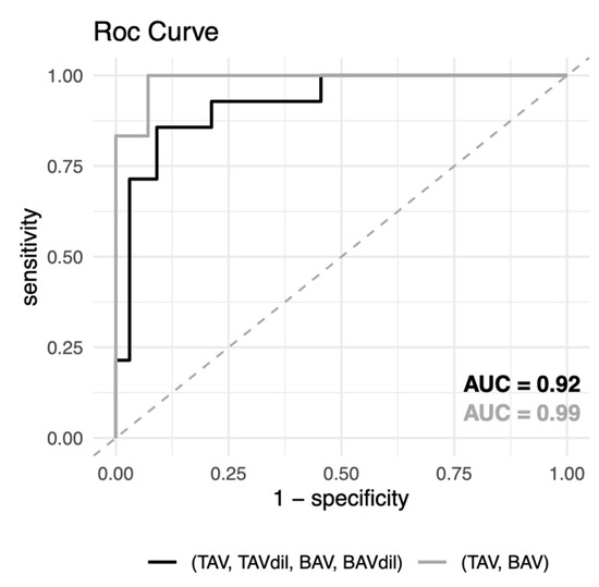 3.3. Prediction of the Morphology of the Aortic Valve or the Dilation of the Ascending Aorta in BAV Patients