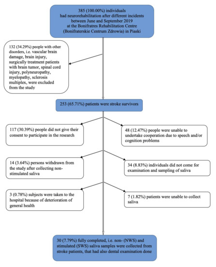 Gerreth, P.; Maciejczyk, M.; Zalewska, A.; Gerreth, K.; Hojan, K. Comprehensive Evaluation of the Oral Health Status, Salivary Gland Function, and Oxidative Stress in the Saliva of Patients with Subacute Phase of Stroke: A Case-Control Study. J. Clin. Med. 2020, 9, 2252. https://doi.org/10.3390/jcm9072252