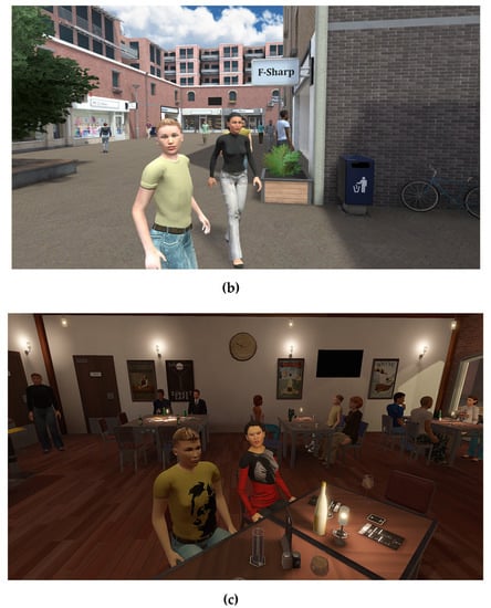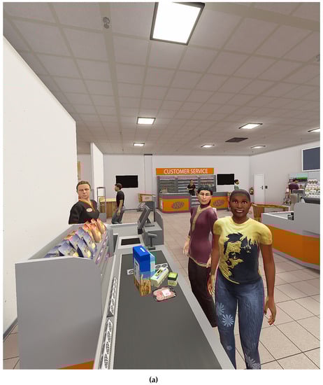 Virtual environments: supermarket (a), shopping street (b), and café (c). Source: CleVR BV, Delft, The Netherlandd.