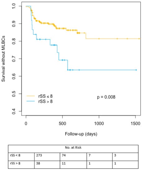| rSS > 8 | 2.502 | 1.278–4.900 | 0.007 |