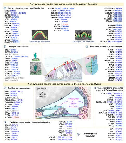 - Richardson, G.P.; de Monvel, J.B.; Petit, C. How the genetics of deafness illuminates auditory physiology. Annu. Rev. Physiol. 2011, 73, 311–334. [Google Scholar] [CrossRef]