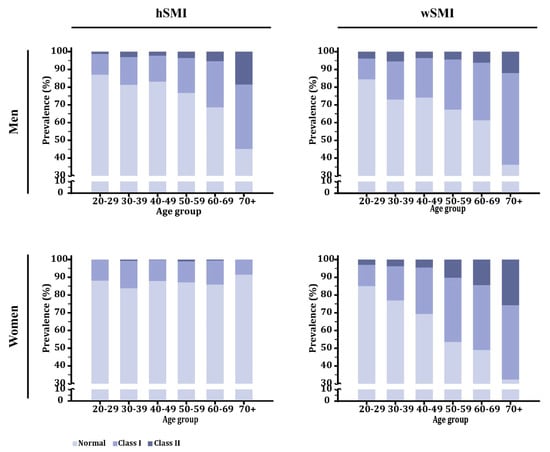 3.1.3. Prevalence of Low Skeletal Mass According to Age Decade