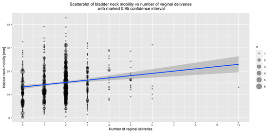 The functional anatomy of the BN and urethra has been studied extensively because of the belief that it is important for urinary continence. To date, the pathophysiology of stress urinary incontinence (SUI) has not been fully explained and the gaps in the understanding of causal mechanisms limit progress both in preventive strategies and treatment. A number of factors seem to contribute to the etiology of this condition, involving pathologies of the urethral sphincter function, bladder neck, urethra and pelvic floor muscles. However, the predominant factor influencing the occurrence of SUI remains to be elucidated [4,5]. Increased BN mobility is regarded to have an association with the occurrence of SUI [6]. It has been suggested that this results from disturbed BN and urethral support [7,8], which can be associated with pregnancy and vaginal birth [9]. During the last few decades, a variety of methods have been used to assess urethra-vesical mobility, including the Q-tip test [10] and radiographic techniques [11], as well as ultrasound techniques-introital [12], vaginal [13] or perineal [14] and magnetic resonance imaging [15]. BN descent has been postulated to be the most appropriate measure of urethral mobility [16]. It can be evaluated with the use of ultrasound examination: a non-invasive, simple and reproducible method that allows for dynamic assessment of pelvic organs. To date, several studies evaluating changes in BN mobility during pregnancy, after childbirth and its correlation to urinary incontinence have been published [9,17,18]. Still, BN hypermobility has also been reported in asymptomatic nonpregnant nulliparous women [19,20], as well as patients with pelvic organ prolapse (POP), both with and without any symptoms. Although the functional anatomy of the BN has been studied extensively, the available data concerning epidemiological determinants of urethro-vesical mobility are scarce.
