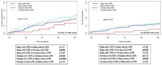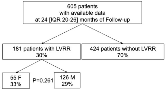 To evaluate the association with the study outcome measures, the population was stratified into four groups, based on sex and the occurrence of LVRR.