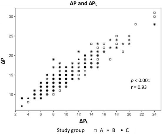 Correlation between driving pressure (ΔP) and transpulmonary pressure (ΔPL).