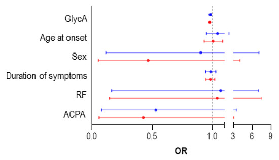 Different authors have already demonstrated higher levels of GlycA in rheumatic conditions [7,8,9,10], mostly conducted in patients with long-lasting conditions. This represents a major limitation to understanding the nature and clinical relevance of GlycA as a biomarker, in part owing to the broad exposure to treatments [11] and overt comorbidities. Moreover, in the setting of RA, notable differences were observed between established disease and the early stage, in terms of clinical phenotype and management. Interestingly, the early stage of the disease is of paramount importance for the long-term disease outcomes [12], and it has been found to be a significant predictor of sustained remission and better disease control. Therefore, characterizing biomarkers during early disease is a scientific priority.