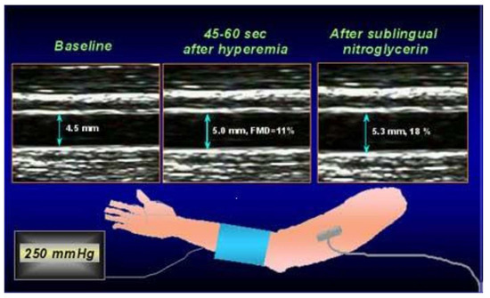 - Takase, B.; Uehata, A.; Akima, T.; Nagai, T.; Nishioka, T.; Hamabe, A.; Satomura, K.; Ohsuzu, F.; Kurita, A. Endothelium-dependent flow mediated vasodilation in coronary and brachial arteries in suspected coronary artery disease. Am. J. Cardiol. 1998, 82, 1535–1539. [Google Scholar] [CrossRef]
