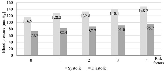 We focused on community-pharmacy-based screenings of blood pressure in individuals without previously diagnosed hypertension. Among 16.9% participants, we measured blood pressure above 140/90 mmHg. In 2018 during the May Measurement Month, world screening confirmed that 40.5% of screened individuals were not aware of the presence of elevated blood pressure [6]. High blood pressure is often accompanied by various risk factors, e.g., obesity, lipid disorders, or family burden [11,12]. As demonstrated in this study, an increase in the number of risk factors results in higher incidence of hypertension. The incidence of obesity is progressively increasing in Poland, particularly among men [6]. This study showed that the average blood pressure tends to increase with an increase in the BMI, and in participants with BMI ≥ 30.0 kg/m2, the pressure was >140/90 mmHg. Positive correlation between BMI values and prevalence of prehypertension and hypertension was previously reported in other studies [13,14,15]. Landi et al. [16] suggested that BMI values correlate with blood pressure values independently from other risk factors. With age, many physical and structural changes occur in the human body, such as decreased function of internal organs, muscle weakness, and changes in body composition (increased body fat) [17]. Similar results were also observed in this study. Higher BMI was associated with an increased number of risk factors.