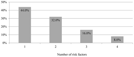 Number of risk factors among study participants recommended to intensive consultation after blood pressure screening in a community pharmacy (n = 25, p < 0.0001).