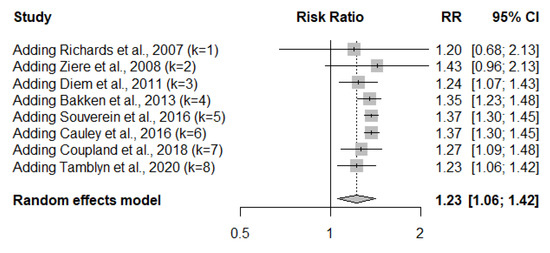 - DerSimonian, R.; Laird, N. Meta-Analysis in Clinical Trials. Control. Clin. Trials 1986, 7, 177–188. [Google Scholar] [CrossRef]