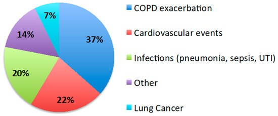 - Serra-Picamal, X.; Roman, R.; Escarrabill, J.; Garcia-Altes, A.; Argimon, J.M.; Soler, N. Hospitalization due to exacerbations of COPD, a big data perspective. Respir. Med. 2018, 145, 219–225. [Google Scholar] [CrossRef] [PubMed]