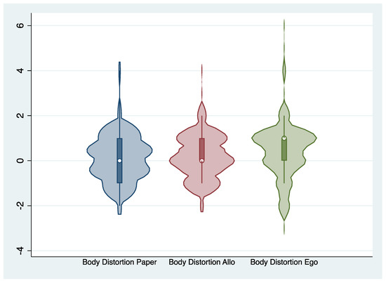 Violin plot of the distribution of body distortion scores.