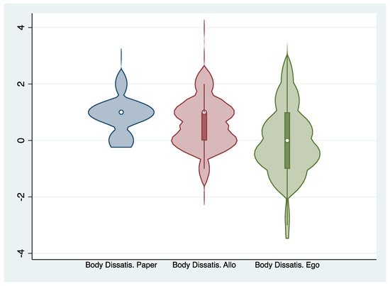 Violin plot of the distribution of body dissatisfaction scores.