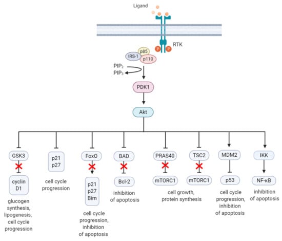 - Manning, B.D.; Toker, A. AKT/PKB Signaling: Navigating the Network. Cell 2017, 169, 381–405. [Google Scholar] [CrossRef]