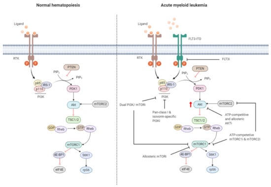 2.2. Constitutive PI3K/Akt/mTOR Activation in AML