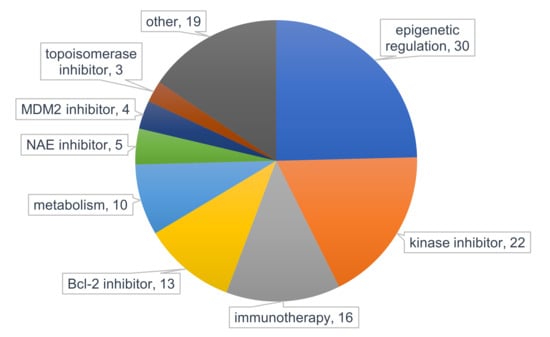 - DiNardo, C.D.; Pratz, K.W.; Letai, A.; Jonas, B.A.; Wei, A.H.; Thirman, M.; Arellano, M.; Frattini, M.G.; Kantarjian, H.; Popovic, R.; et al. Safety and preliminary efficacy of venetoclax with decitabine or azacitidine in elderly patients with previously untreated acute myeloid leukaemia: A non-randomised, open-label, phase 1b study. Lancet Oncol. 2018, 19, 216–228. [Google Scholar] [CrossRef]