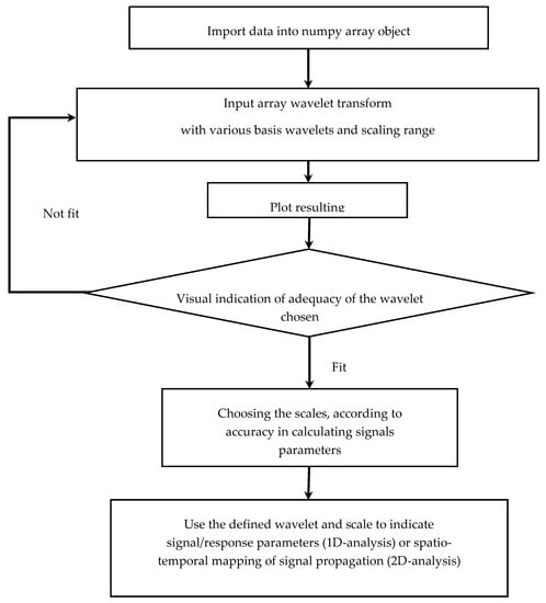 Wavelet transform (WT) is a promising tool to meet the challenge of an accurate automatic determining of signal and reaction parameters. The main difference between WT and another popular method of spectral analysis—Fourier transform—is WT’s ability to obtain not only the frequency but also the time characteristic of the analyzed signal [,]. This feature of WT, as well as the availability of a wide range of the mother wavelets (basis functions used for the transformation), promoted WT’s wide applications for processing and analysis of biological signals, in particular for processing of neural impulses [,,,], analysis of population shifts in environmental studies [], biomolecule studies [,], assessment of changes in chlorophyll content [], water balance [], pathogen identification [], etc. WT was also applied to monitor the status of agricultural crops, including the processing of large amount of data on year/season dynamics, and analysis of images obtained by remote sensing [,,]. There are two main types of wavelet transform—continuous (CWT) and discrete wavelet transform (DWT). In our work, CWT was used due to the greater simplicity of its application and interpretation of the results, as well as its good ability to identify signal features [,].