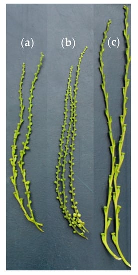 Although the staining test is most rapid, correlations with germination are not always high. Towill and Walters [] explained that a pollen grain can be viable in the sense of being alive, retaining membrane semi-permeability and metabolizing, but may have lost the ability to germinate, or the ability to fertilize an egg. Unfortunately, this cannot be determined using staining methods. Besides, non-viable grains often absorb stain and lead to unreliable conclusions [,]. There is, therefore, the necessity of validating results provided by this method.
