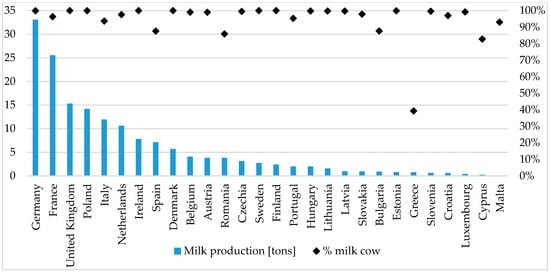 Raw milk production in the EU. Source: own calculations [34].