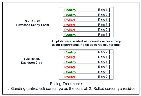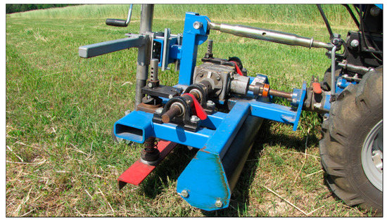 The number of local urban farms producing fruit and vegetables for local farmers’ markets the in USA is on the rise. This increase is driven by consumer demand for healthy and fresh locally grown produce. Local farms usually own small walk-behind tractors with interchangeable attachments. Majority of these small farms realize benefits of utilizing cover crops which are widely promoted by USDA ARS and NRCS to increase sustainability of agriculture production. According to Reeves [1], these multiple benefits that cover crops can provide include weed suppression due to mulching and allelopathic effects, increased water infiltration and water holding capacity, increased soil organic carbon, reduced soil erosion, runoff, and soil compaction. To optimize these benefits, cover crops must be terminated at the appropriate growth stage and managed appropriately, which involves flattening down and crimping with rollers/crimpers as a preferred method of mechanical termination [2,3]. Cover crops must be terminated at an appropriate growth stage to optimize biomass production and to create mulch through which cash crops can be planted directly into cover crop residue [4,5]. A roller/crimper flattens a living plant, and crimping bars (equally spaced on the roller’s drum) crimp stems, crushing them to enhance desiccation. Desiccated residue forms a thick layer of mulch on the topsoil to protect soil surface from harmful rainfall energy, thus reduces soil erosion, and runoff, reduces weed germination and growth, and conserves water for the subsequent cash crop [6]. In the southern US, mechanical termination of cover crop should be done at least 3 weeks before planting a cash crop into flatten residue to minimize a competition for soil moisture and nutrients [7]. A typical cover crop grown in the Southern US is cereal rye (Secale cereale L.), and can produce between 3 to 11 metric Mg per ha of biomass providing benefits such as allelopathic weed suppression and a mulch effect due to improved soil surface cover [8]. According to Ashford and Reeves [4] rye termination rates above 90% were sufficient to plant a cash crop into desiccated residue without competing for resources. Common practice in accelerating termination process is to utilize herbicides (glyphosate: RoundupTM) as a supplement to rolling/crimping. This practice, however, is not permitted in organic systems, where the use of commercial herbicides is prohibited. Because of this restriction mechanical termination by rollers/crimpers must be as effective as chemical application.