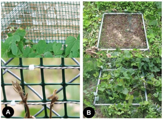Kudzu or Japanese arrowroot (Pueraria montana var. lobate [Willd.] Ohwi) was originally cultivated to harvest starch [6] and various medicinal phytochemicals [7] to supply livestock feed [8,9,10,11] as a source of biofuel [12], and to control land greening or land erosion in desert areas [13]. However, the use of kudzu has declined in recent years, and the plants have been abandoned without being controlled properly. As a consequence, they have become a major weed species that flourishes vigorously across Japan.