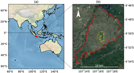 - Wakabayashi, H.; Motohashi, K.; Kitagami, T.; Tjahjono, B.; Dewayani, S.; Hidayat, D.; Hongo, C. Flooded Area Extraction of Rice Paddy Field in Indonesia Using SENTINEL-1 SAR Data. ISPRS—Int. Arch. Photogramm. Remote. Sens. Spat. Inf. Sci. 2019, XLII-3/W7, 73–76. [Google Scholar] [CrossRef]