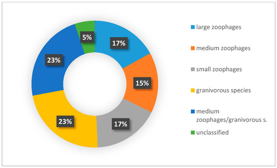 Percentage of Carabidae species from different trophy groups. This diagram was made based on selected publications, including data on the ecological characteristics of Carabidae communities inhabiting the investigated plants.