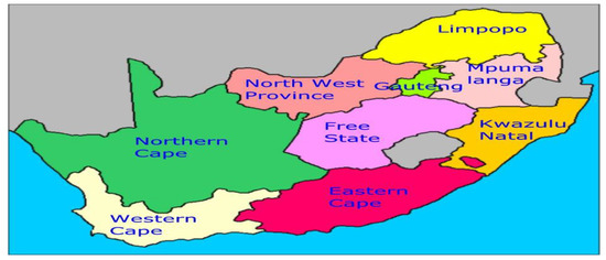 - Map of South Africa showing the various Provinces. Available online: https://www.southafrica.to/provinces/provinces.htm (accessed on 10 July 2019).