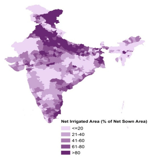 - Source-wise Irrigation of India. Available online: https://www.indiastat.com/agriculture-data/2/irrigation/145/source-wise-irrigation-area-1950–2015/449345/stats.aspx (accessed on 18 April 2019).